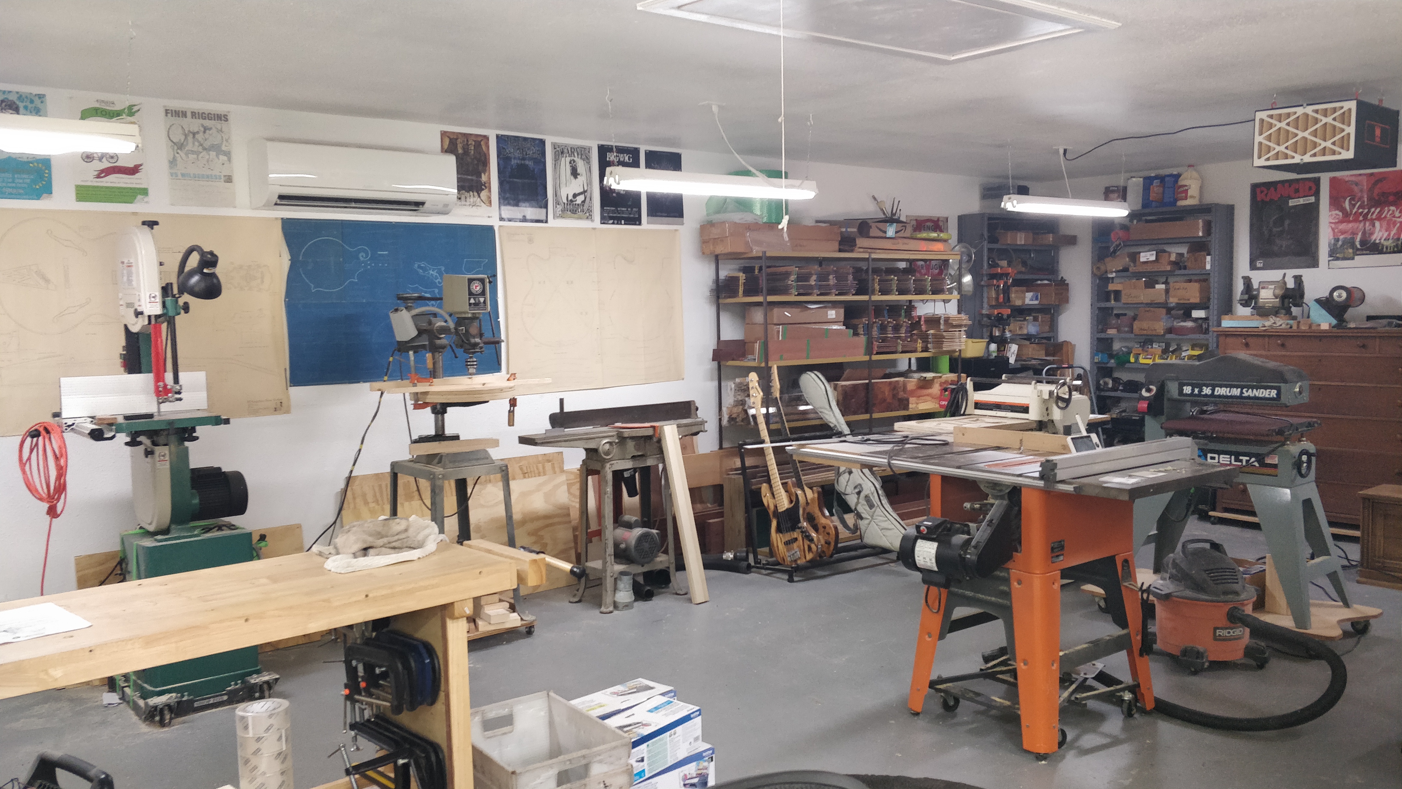 I worked an additional summer at Subway and returned back to college, this time, with the ambition of building my own line of instruments. I befriended the only luthier in the town, cleaned up/re-arranged his shop in exchange to use his band saw and drill press to work on my own stuff. I built and sold a handful of instruments in his shop and eventually in the garage of a house I rented the next few years.